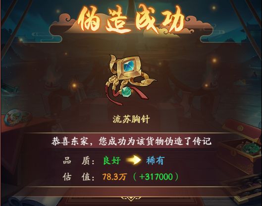 ◆传记:部分货物货物描述中带有传记,若传记为空白,伪造家可对货物添加传记,添加后可提升货物品质以及传记,且商品成为赝品。