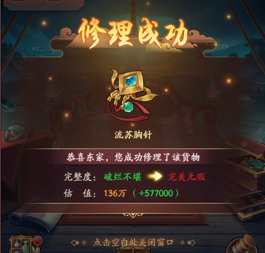 ◆修补匠:可将完整度不全的货物修补至完美无瑕。