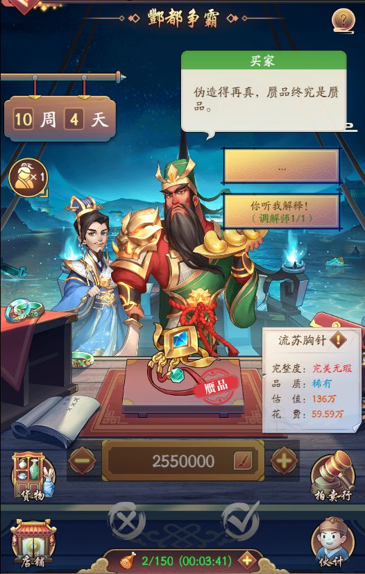 ◆调解师:可令失去耐心的顾客继续商讨价格,让发现赝品的顾客谅解你,避免赝品被官府没收。