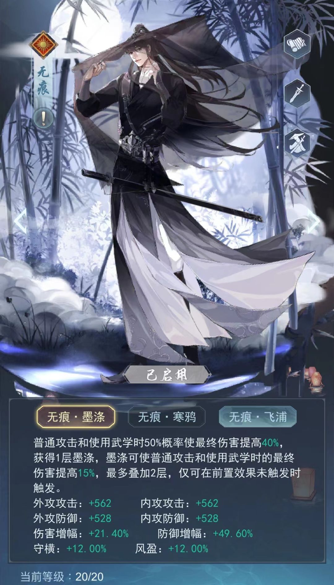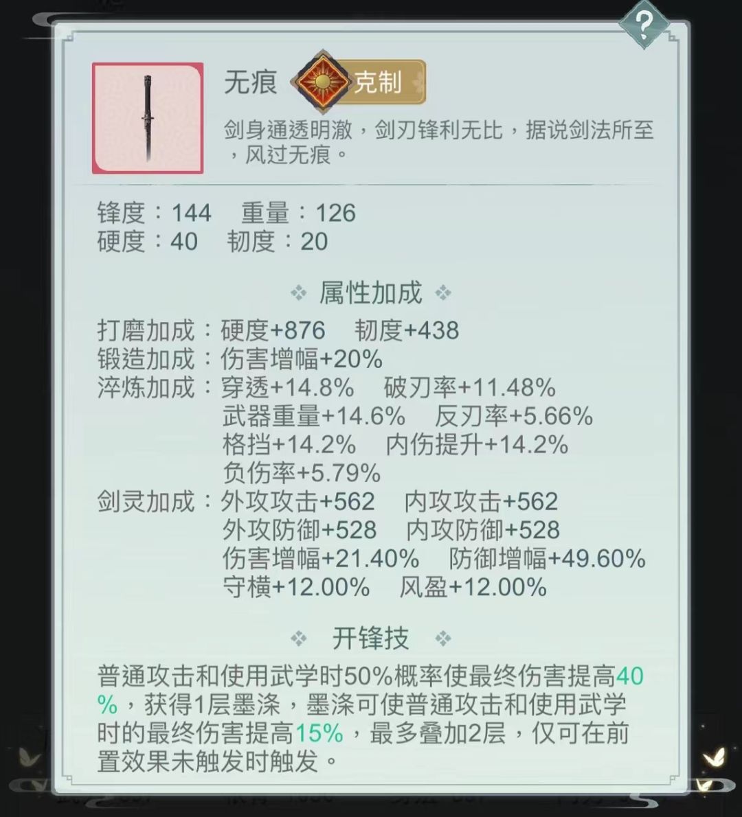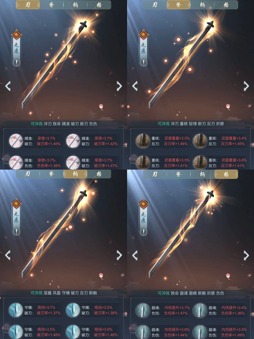 ➤武器:无痕(3/4重,8破4负4反4穿4魂,守横洞察随意)