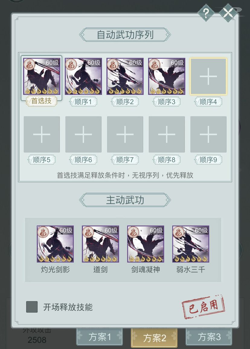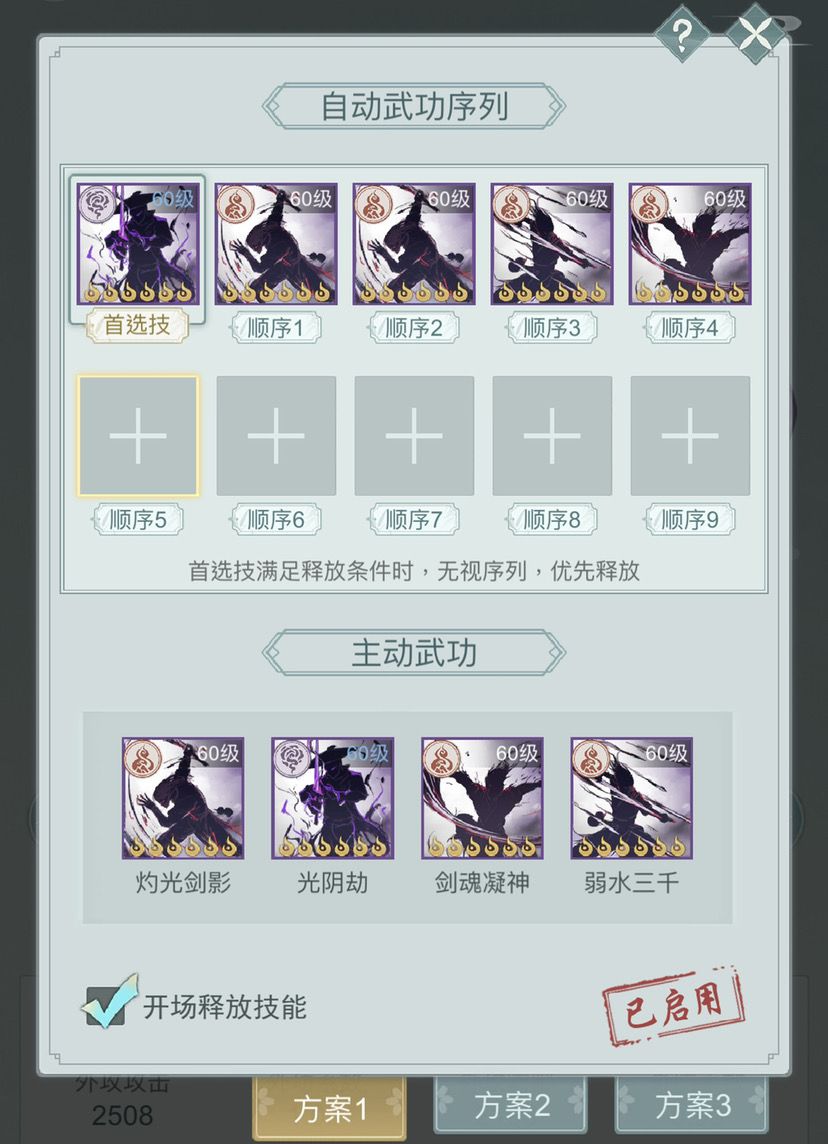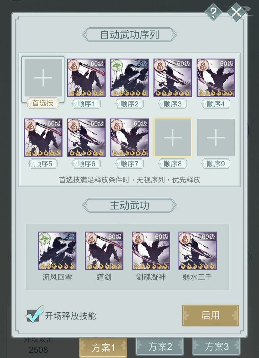 ②流风轴-开局不释放,开局8剑意,开局盾