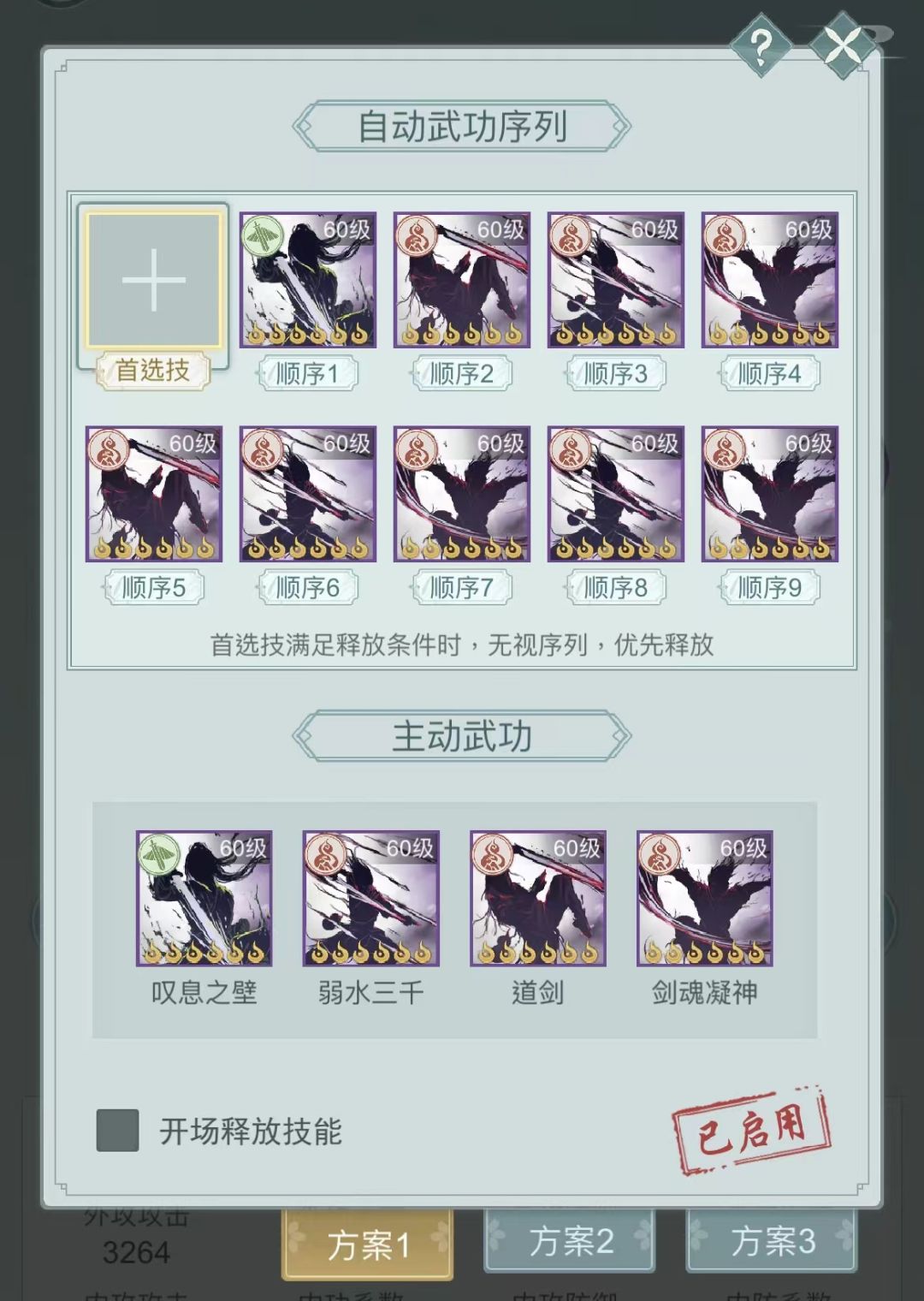 ①流风轴-开局释放,开局8剑意,开局盾
