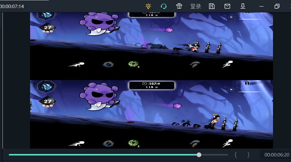 如下两张图来源为视频截图,可以看到滑步仅仅造成身位的前移,并没有产生速度的变化