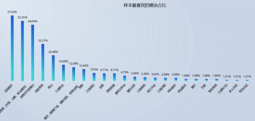 从游戏内玩家问卷调研的反馈结果来看,作为本次版本调整最大的几个系统:主线副本、装备系统、侠客的经脉/武学养成,这几大模块还是相对能令少主们满意的。