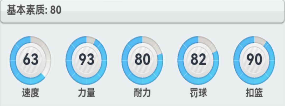 决定体力消耗和回复的速度。场上体力越低,进攻和防守效率越低,所以一个高耐球员,尤其是一个好耐的核心球员对球队提升是非常大的。