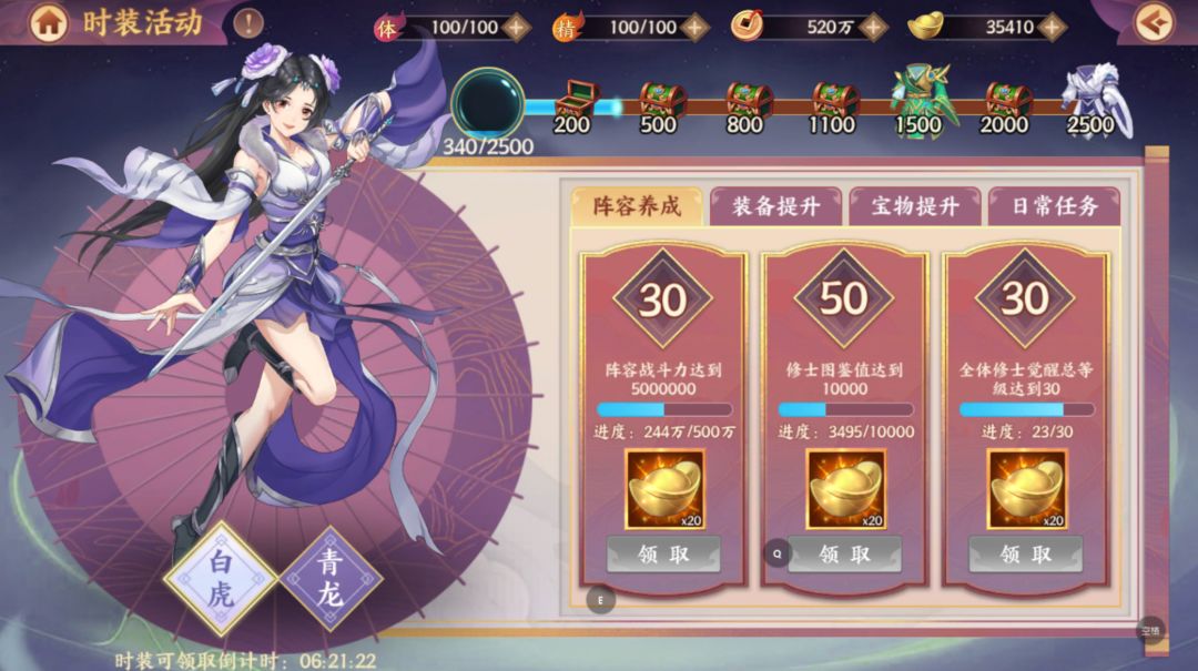 完成特定任务还可领取【青龙】、【白虎】、【朱雀】三大时装!