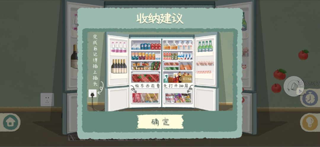 遇到东西多的关卡(冰箱,行李箱,鞋子,修理箱……),可以看广告增加时长,比从头再来好一些