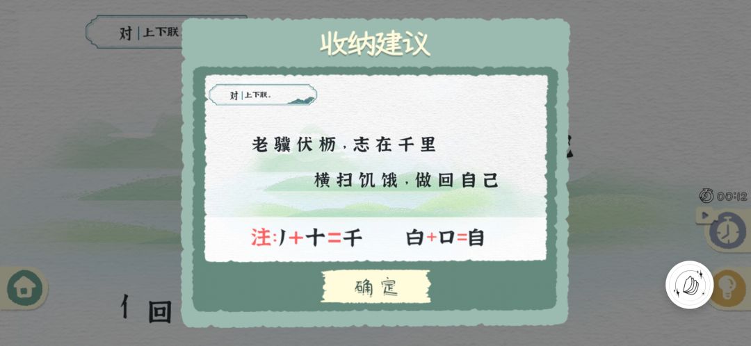对联那个,有些字要多点一下才好调整比如说“山”——“彐”