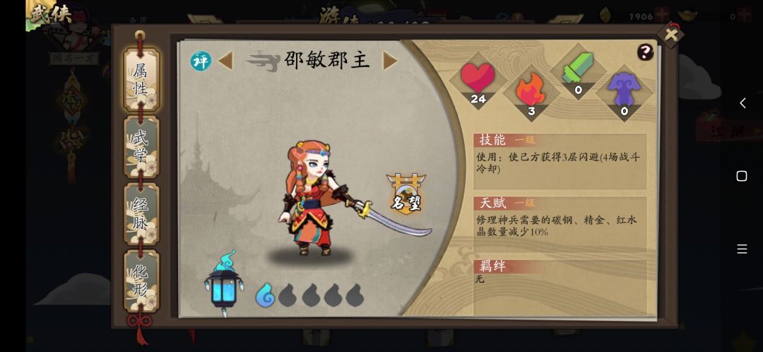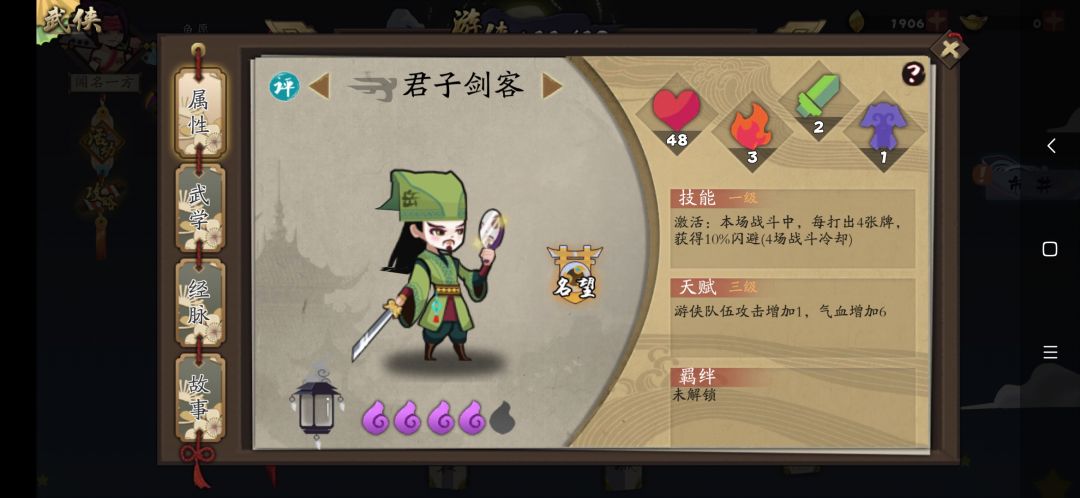 武学:对敌我造成一次伤害,每闪避一次提高对敌人的伤害,打出手牌中的所有同名牌,循环。