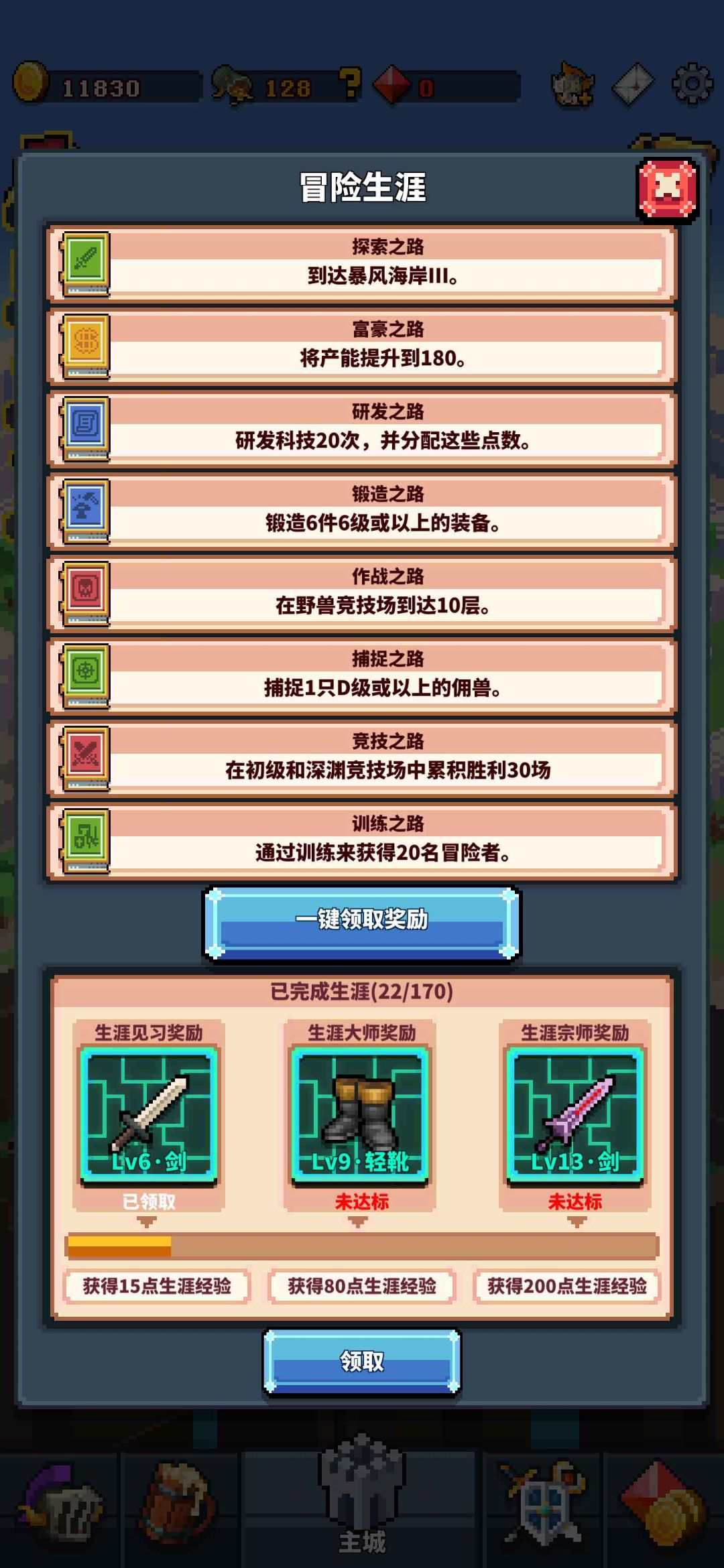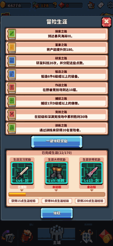 在游戏的右上角,有一个小小的生涯图标,在这里为冒险者列举了一些小目标,当你不知道该做些什么事情时,按照这些目标上做一定是最好的选择。