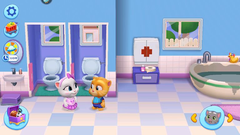 那么我们完成了吃饭,上厕所,洗澡等等的操作后,宠物们都会有想做的事情,我们可以查看它们头上的气泡了解,比如玩玩具,踩滑板,打游戏等等,而有一些比较特殊的就是在头上冒出某个成员的气泡。那么这个时候我们可以把它扯到对应的宠物身边,就能触发新奇的互动啦。