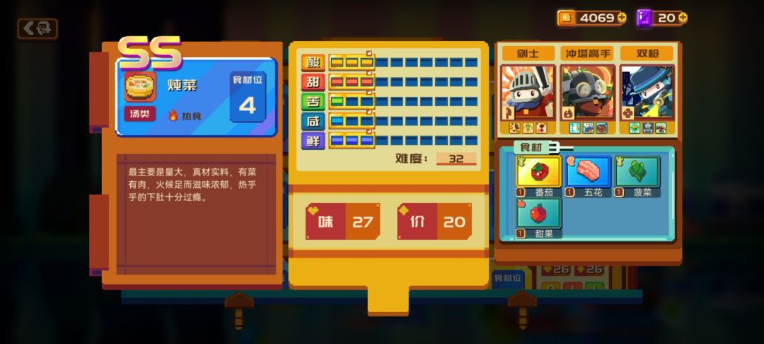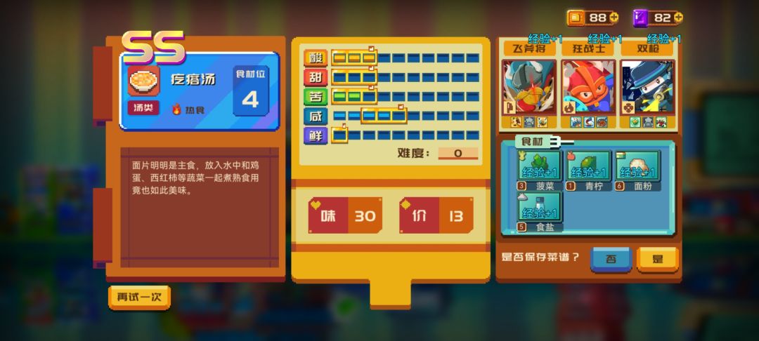 ps:疙瘩汤有番茄酱以及青柠这类加酸,甜或苦数据的可以达到ss