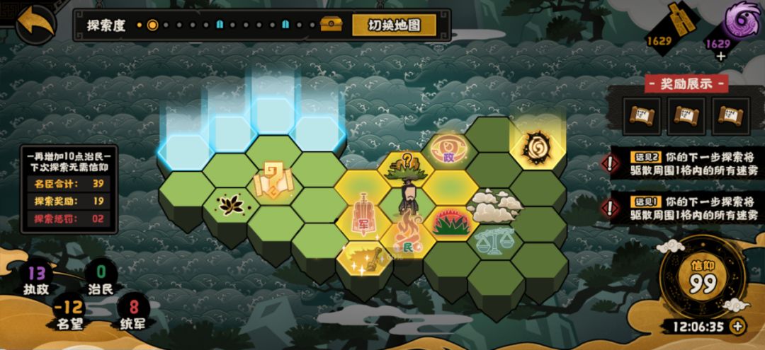 在探索玩法中,大家可以派出自己的名臣们离开自己的岛屿向未知的界外之地进行探索。