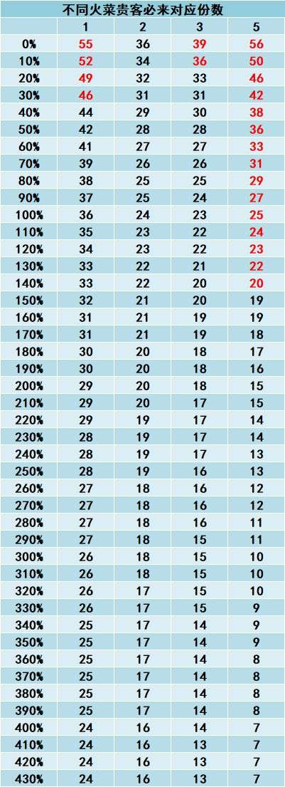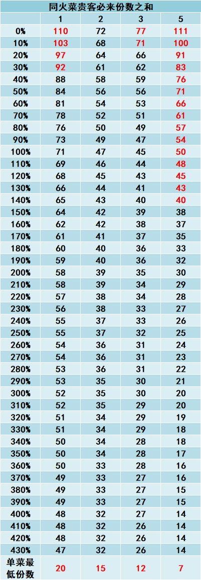 本次更新上线了一个新厨师,瓜子,技能加修炼可以达到80%贵客率,极限贵客率被推倒430%,因此更新一波贵客必来表格,看不懂的可以翻看梨大只大佬和本人以往的帖子,链接在下面。(4火目前还没有)