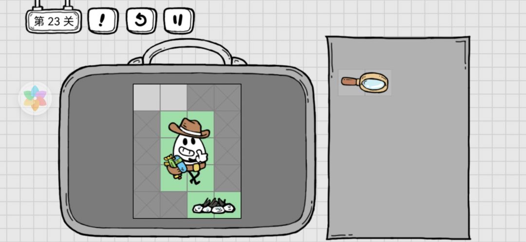 23关先用放大镜生火烤肉,在用水枪灭火,然后把烤肉和水枪给蛋蛋
