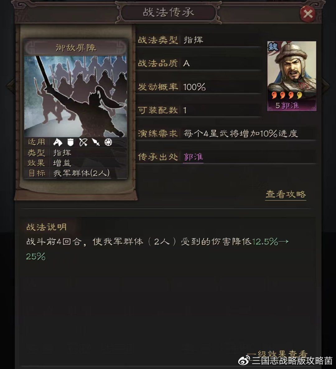 战法来源:郭淮传承