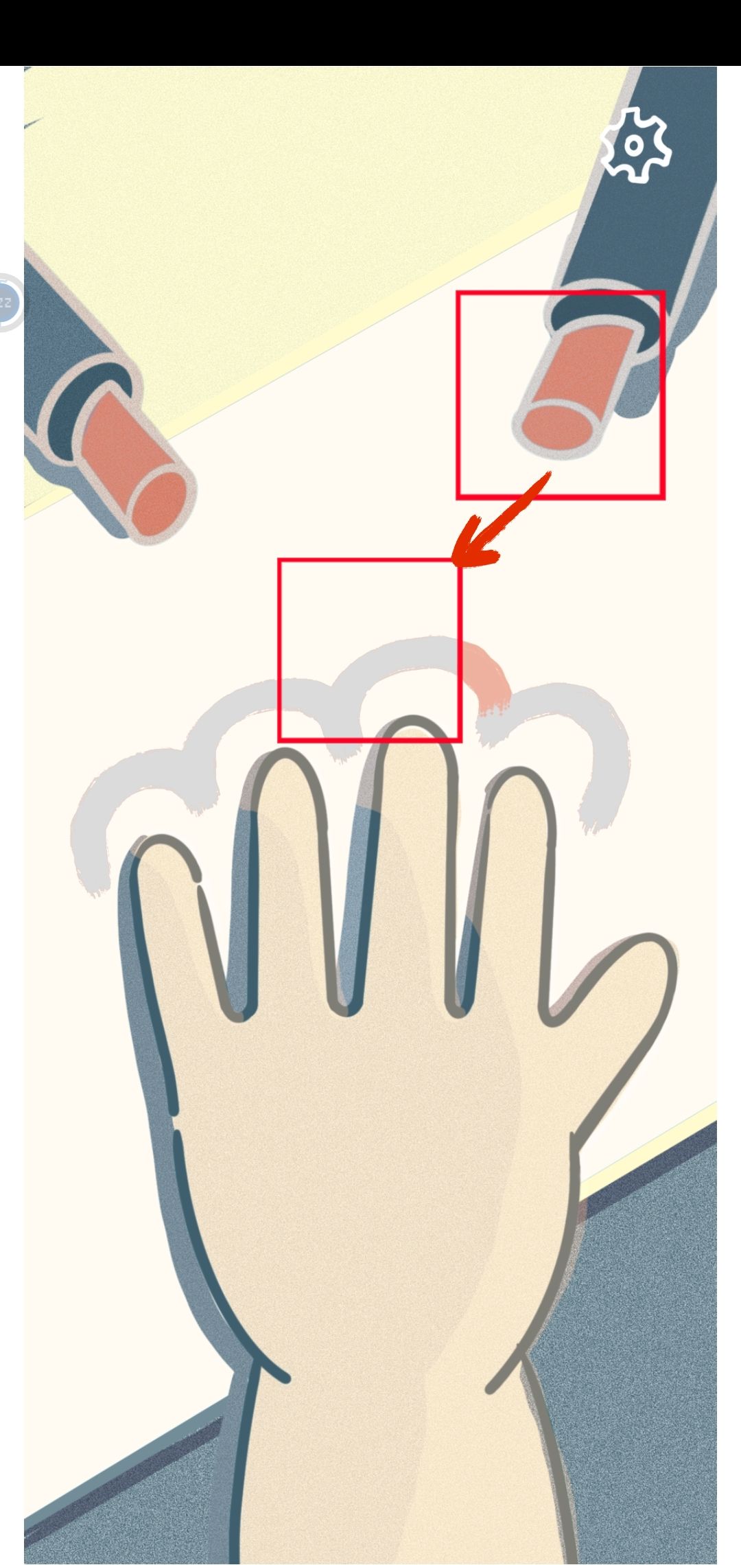 按住口红,将口红移到女生手边缘的位置,然后涂色。