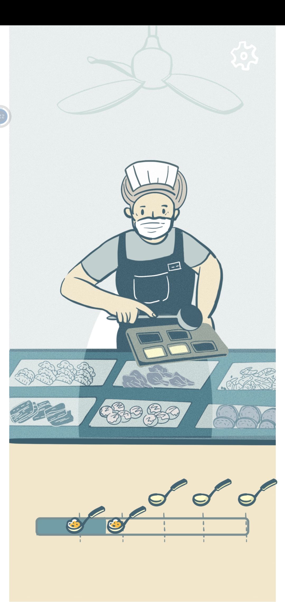 食堂大叔打饭,和扣子那里一样,到达虚线就松手。