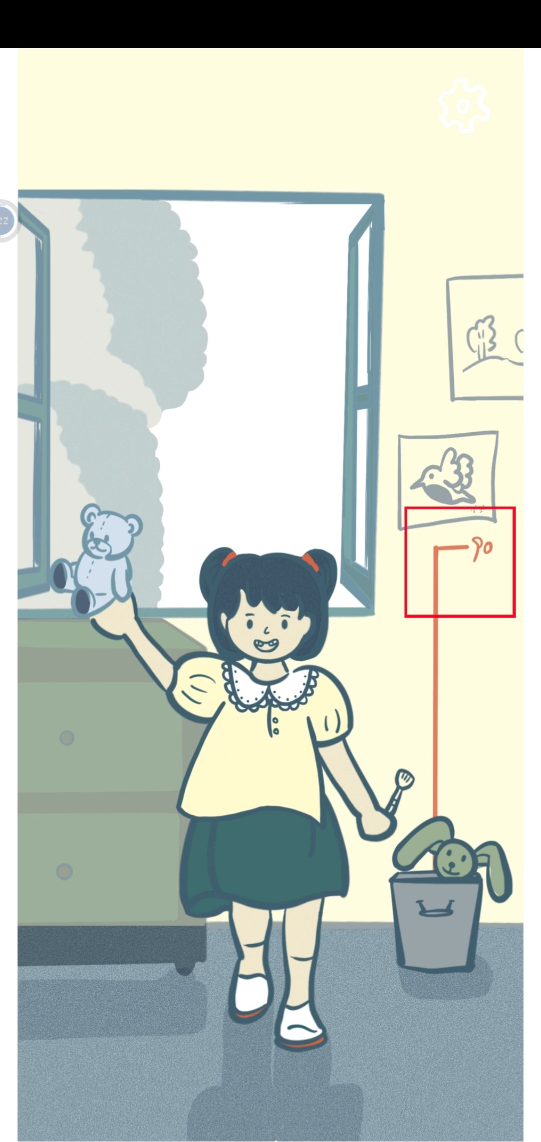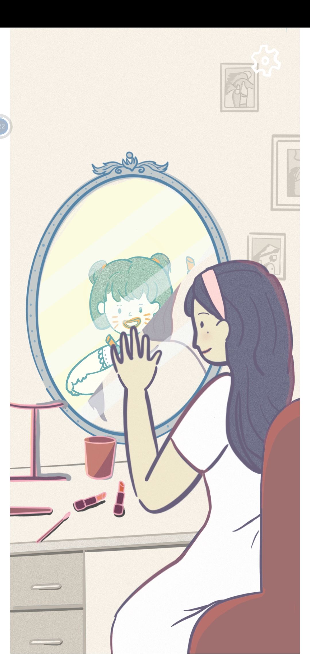再次擦拭镜子,出现女生小时候,点击镜子。