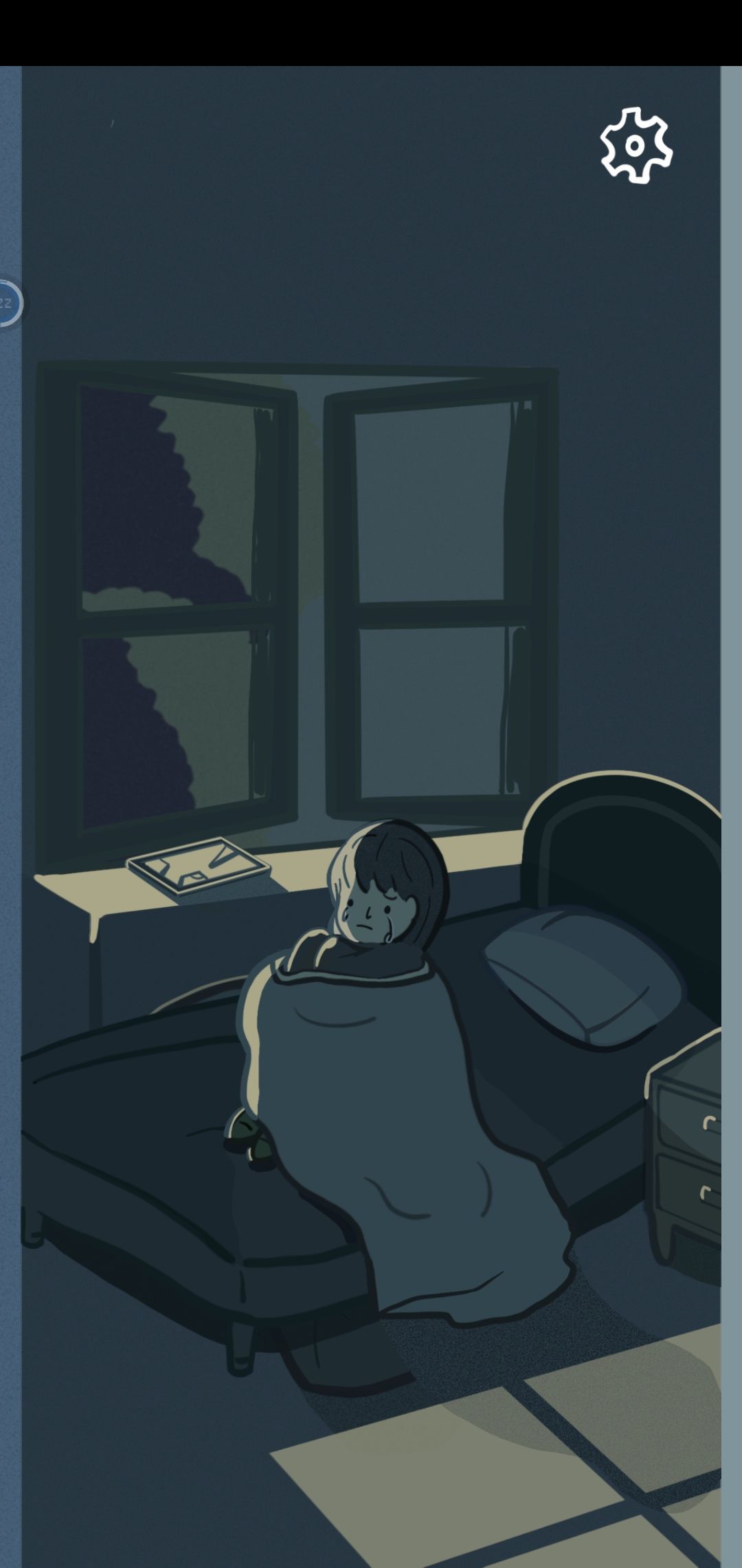 女孩儿在房中哭泣,长按任意位置,直到屏幕完全变黑。