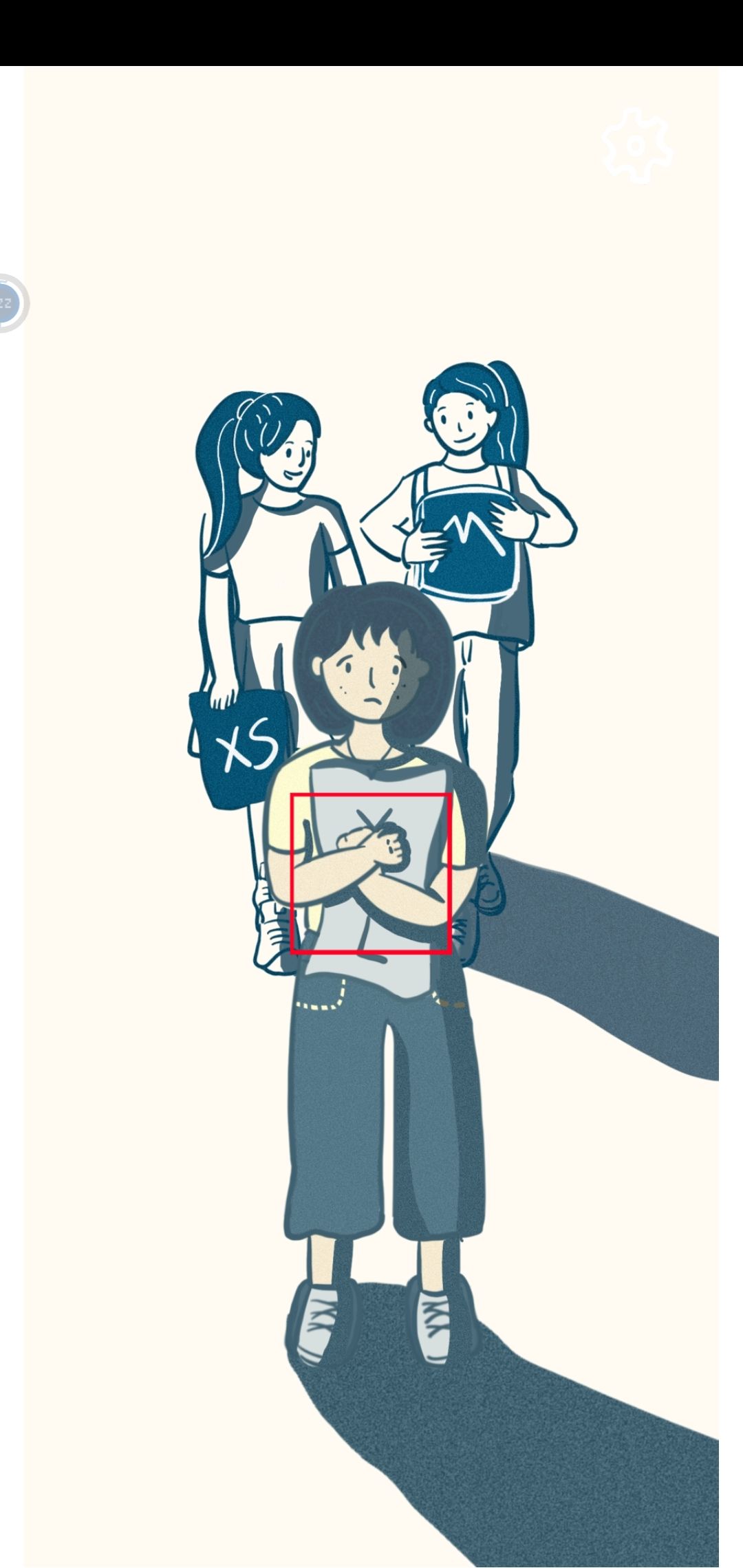 此时女生周围的人开始闲言碎语,点击红色的字框。