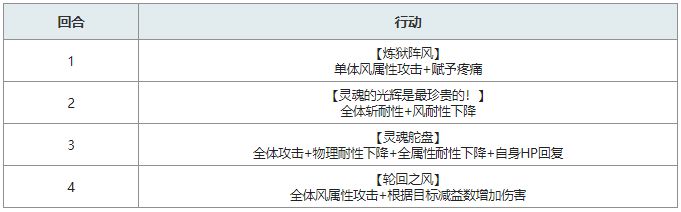 整体难度并不高,但boss第二回合开始给我方施加减益效果,此时转阶段,强制使用的“轮回之风”技能极有可能减员甚至团灭。