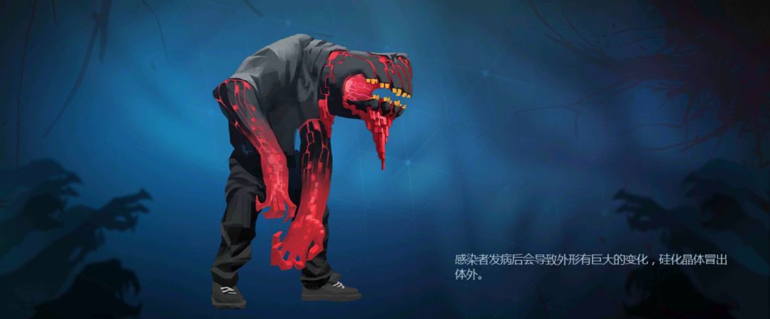感染者发病后会导致外形有巨大的变化,晶体冒出体外