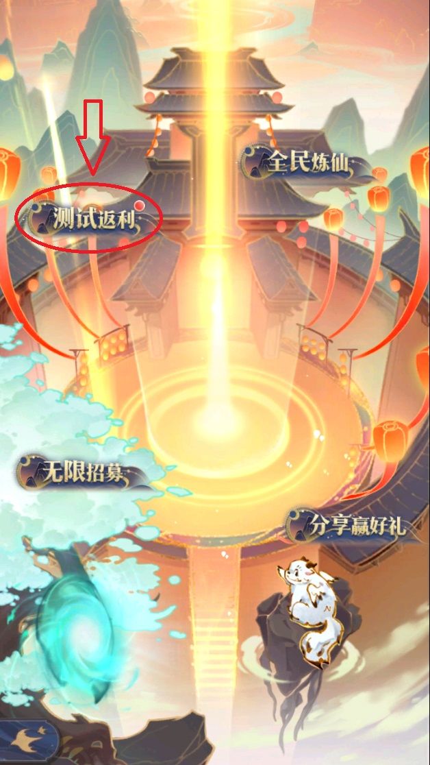 ②点击进入【结伴炼仙】,在弹出的页面点击进入【测试返利】;