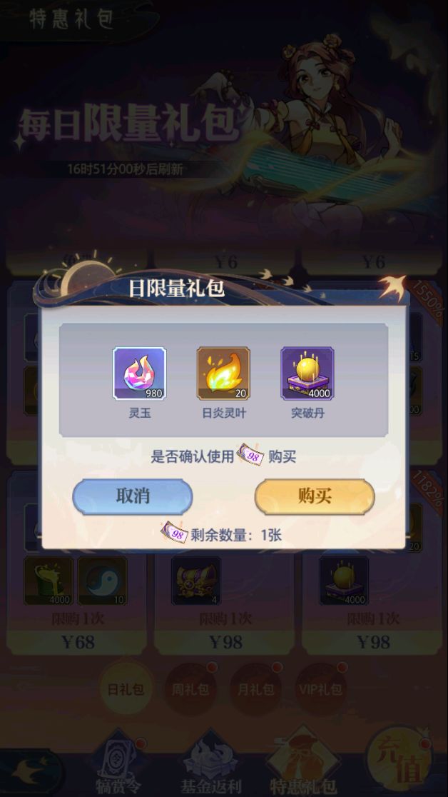 ④在礼包购买页面,即可使用领取的代金券购买与代金券价值相当的礼包。