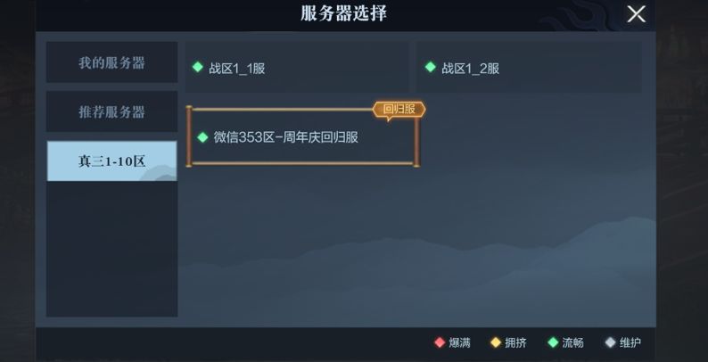 满足回归条件的小霸王能激活周年庆专属回归新服,可在区服界面选择进入。