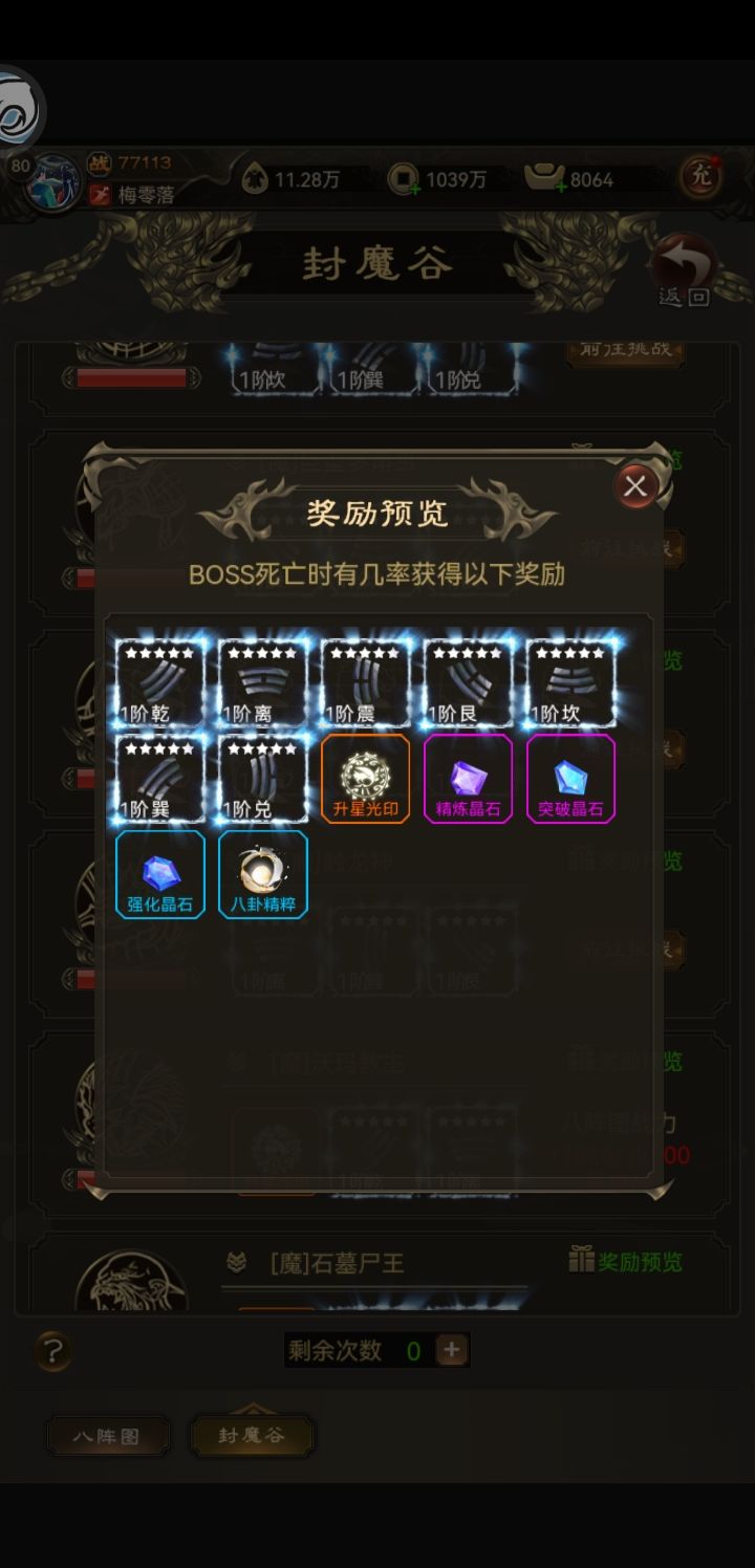【获取途径】目前来看主要是通过封魔谷打BOSS直接掉落,或者通过BOSS掉落的【八卦精华】兑换。理论上来看BOSS可以爆出所有八卦需要的材料,但是时间和几率上来说这个系统,要是白嫖,可以按月来算进度。
