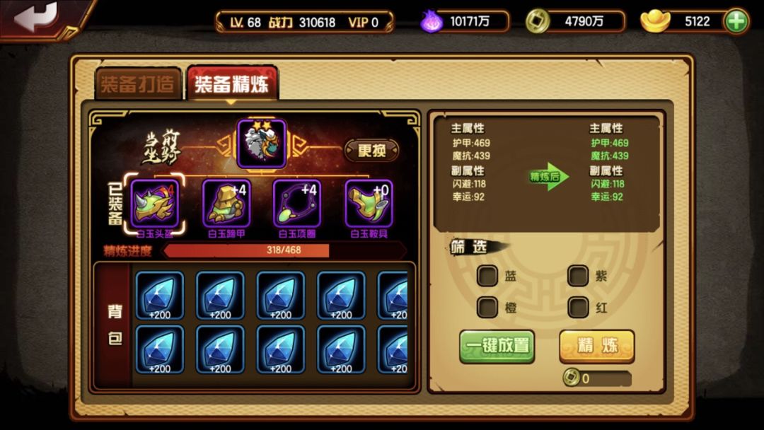 坐骑装备精炼:消耗精炼道具及金币强化装备 四人副本之白象王