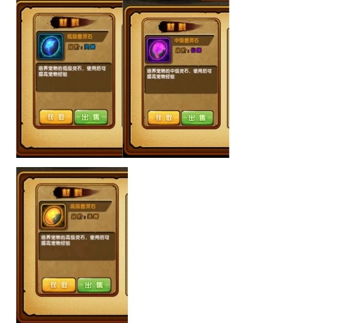 不同的兽灵石给宠物增加的经验是不相同的,低级、中级、高级分别给宠物增加二万、八万、四十万。