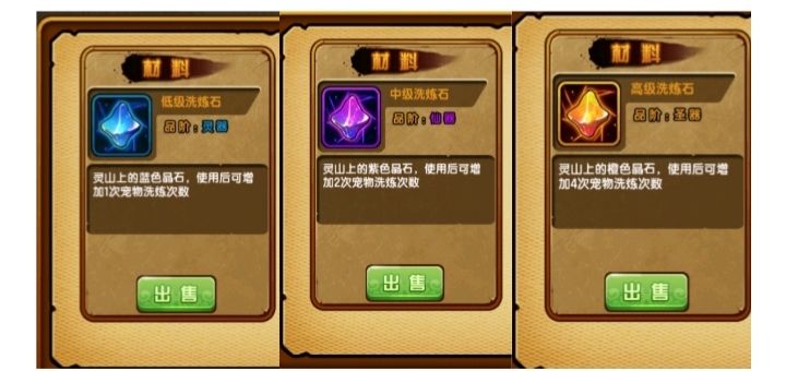 宠物资质:丛林野兽、荒野珍兽、稀世灵兽、奇幻妖兽、上古圣兽。(资质越好,战力越强。)