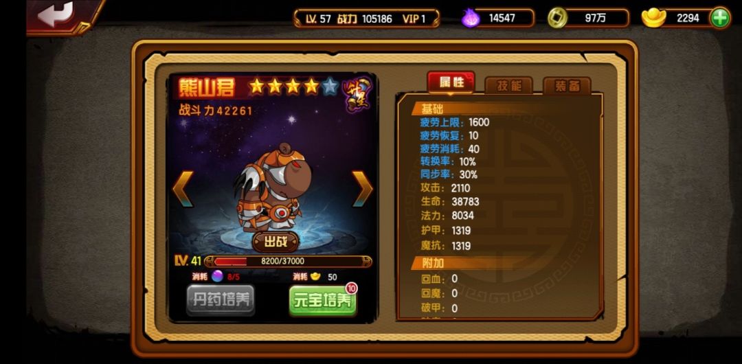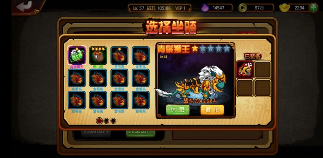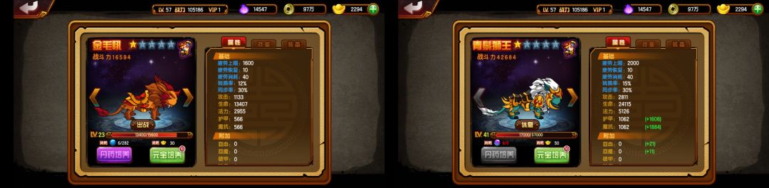 其它注意事项:1、打锁妖塔时,宠物和坐骑都不能用。2、对于培养坐骑,既可以用坐骑丹,又可以用元宝,我建议用坐骑丹。可以在商店里买坐骑丹,但主要还是在锁妖塔得到。3、想要更强的话,要选择好坐骑,我建议以青鬃狮王为下限,也就是不要把熊山君升到较高级,前期攒资源,后期升坐骑时一下子就好了。举个例子吧,41 级的熊山君没有装备,加战力 4014。而且同等级的狮王和山君,一星狮王堪比四星山君,让我很是后悔把山君升到四星,废升星石和灵魂。 所以坐骑越好,越值得培养,同时坐骑品质越高,同等级加战力越高。