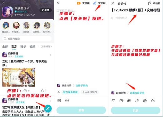 1. 活动期间,在TapTap《四象物语专区》丨子版块【四象攻略学堂】TAG下发表符合本次征集主题的攻略内容,并将攻略链接+游戏相关信息(账号昵称+ID+所在区服)回复到本活动贴即可成功参与活动,如在本贴回复无关内容或水贴将视为无效参与并删除。