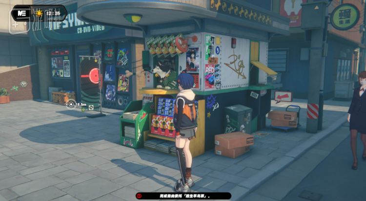 这种表现效果良好、能激发玩家分享欲的细节设定存在于游戏内的多个角落。比如主角家门口报刊亭的老板是一只小狗,亭子外不仅有符合游戏整体美术风格的设计,内部还有针对狗设计的餐饮区和饮水器,在空闲时,小狗还会触发喝水、打瞌睡的待机动画。