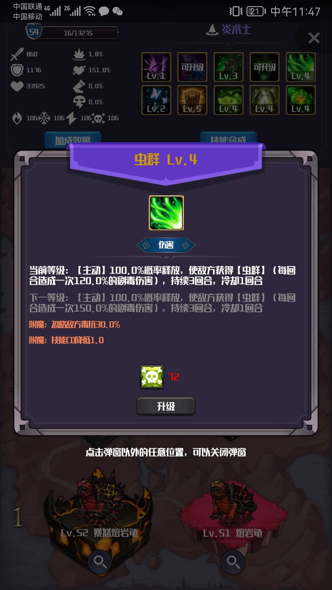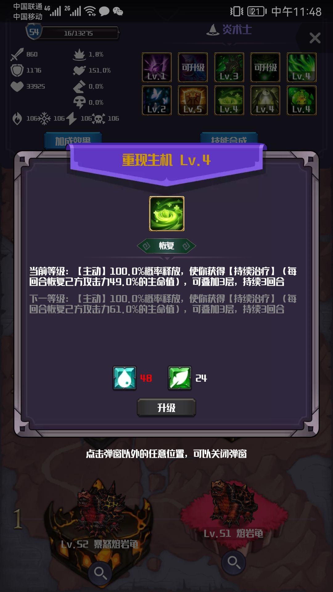 特别说一下过量治疗这个技能,虽然会扣血,但这个扣血的幅度是不会随升级增加的,还能被毒系天赋里的毒盾减免一下,基本没啥副作用,但升级后奶血的程度大大提高,而且释放几率只有50非常好评,通常都是被打了两三个回合触发免死了只剩一滴血,一个过量治疗又回满了。。。