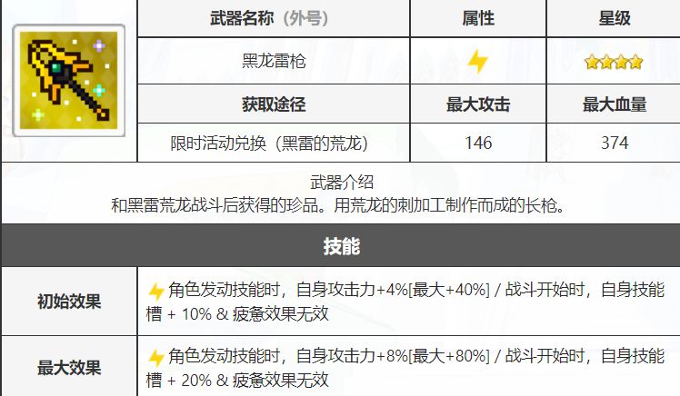黑雷龙枪,黑雷龙剑的纯下位,不用换,活动打完估计都能掉溢出很多