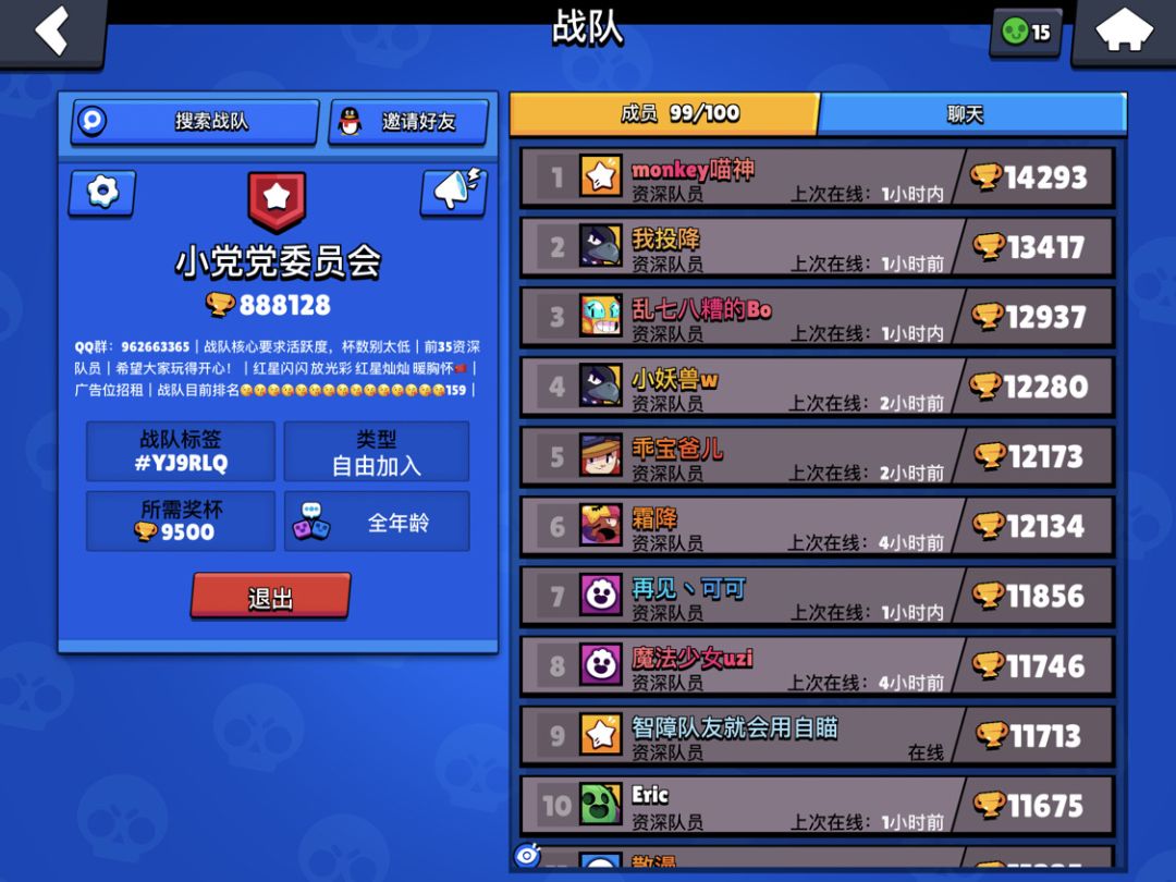 公会简介:活跃度极高!开黑队友不用找!气氛友好群里讨论热烈噢!