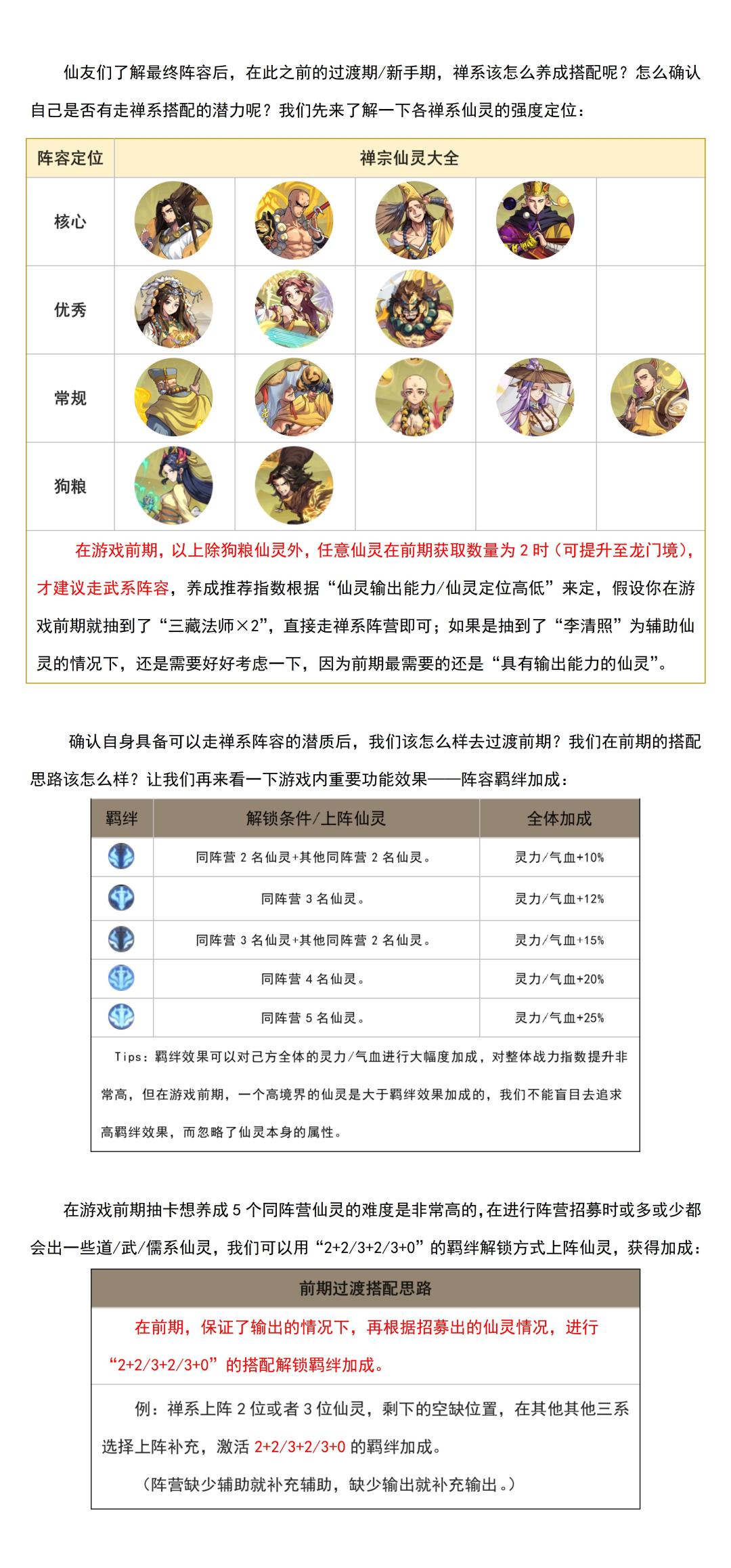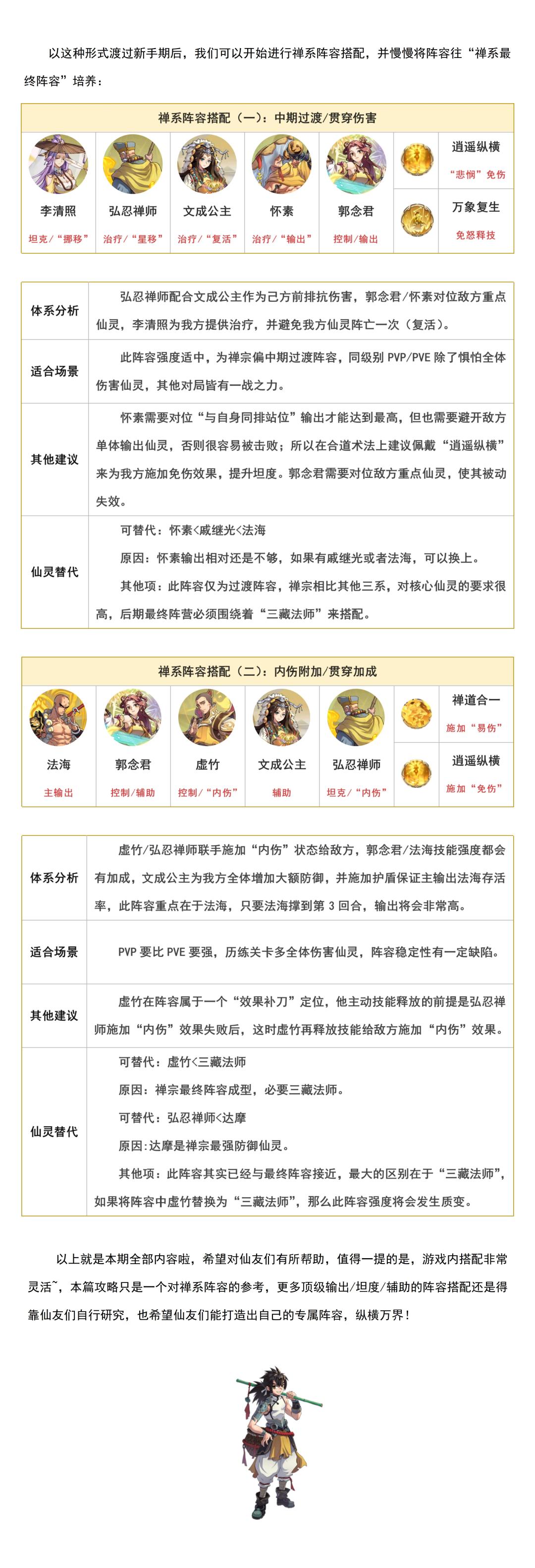 【炼仙攻略团】禅宗全阶段阵容搭配思路