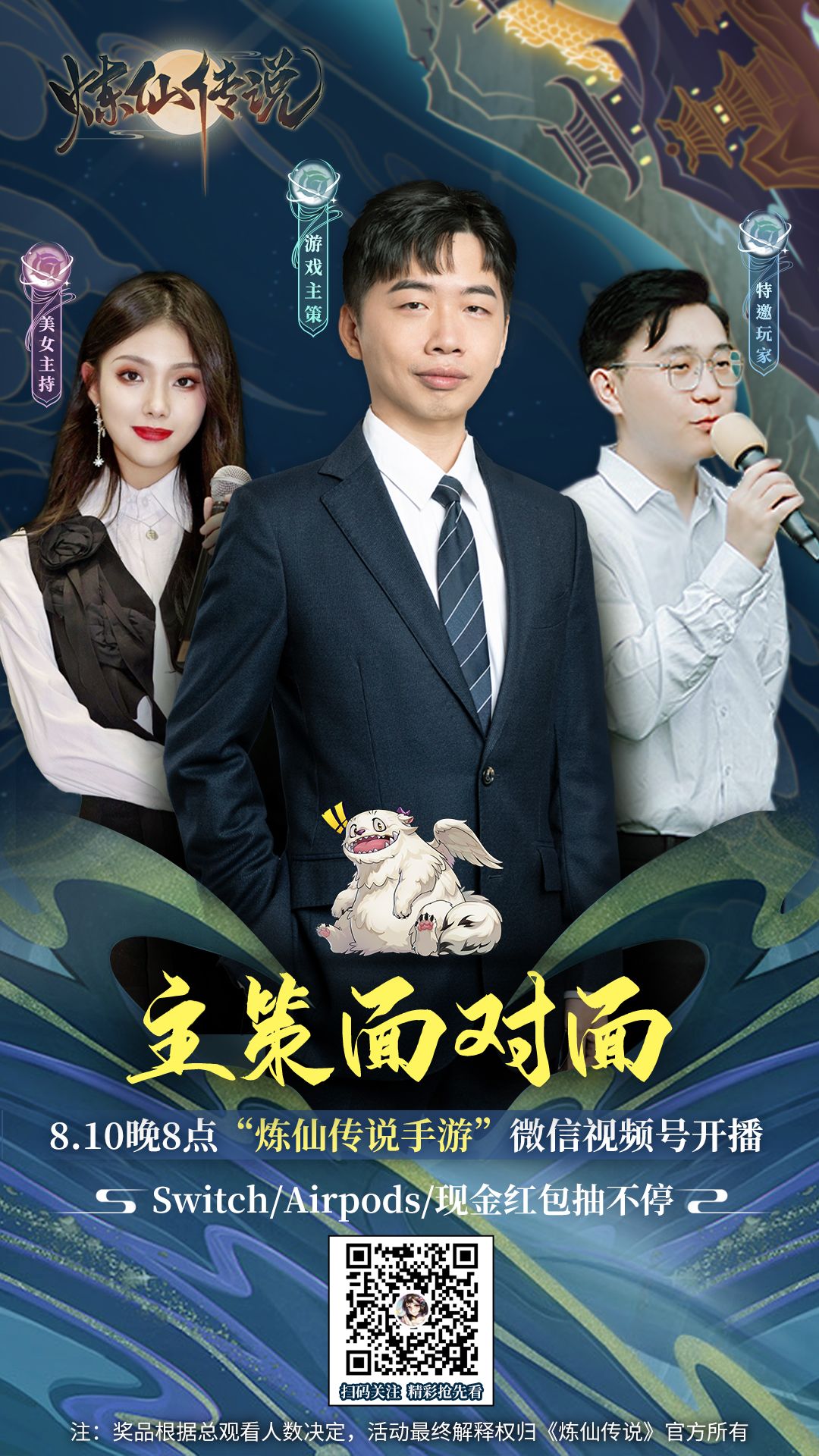 本次直播将在《炼仙传说》微信视频号进行,直播开始时间20:00,本场直播预计持续1个半小时,各位仙友可以备好瓜子矿泉水观看直播。