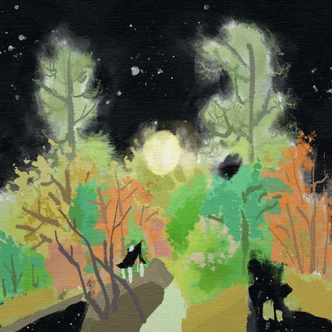 溪头看月出深松,叶间坠露声重重