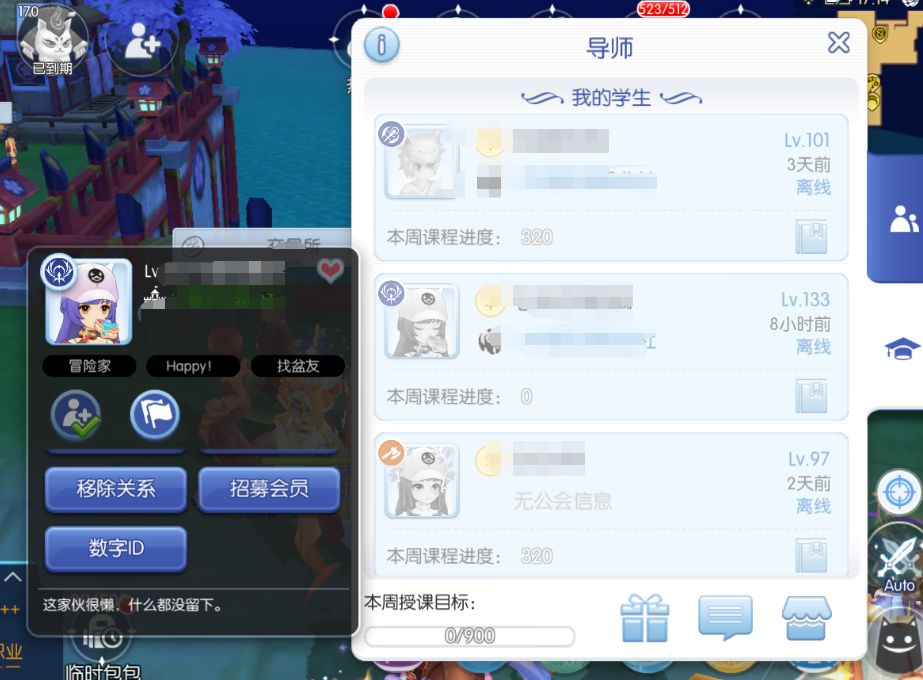 690+270=960,基本带徒儿完成任务,第二天基本就可以完成目标的900个。这里有一个需要提示的是,徒弟高于130级是无法拜师的,我这个徒弟号是90多级的时候拜师的,只要一直不毕业,就不会有影响。