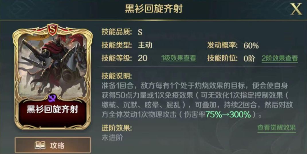 这个技能可以说是灼烧队天花板级别的输出技能,它的存在大幅提高了关羽输出的稳定性和爆发力,而免疫效果也可以让关羽有更好的输出空间。
