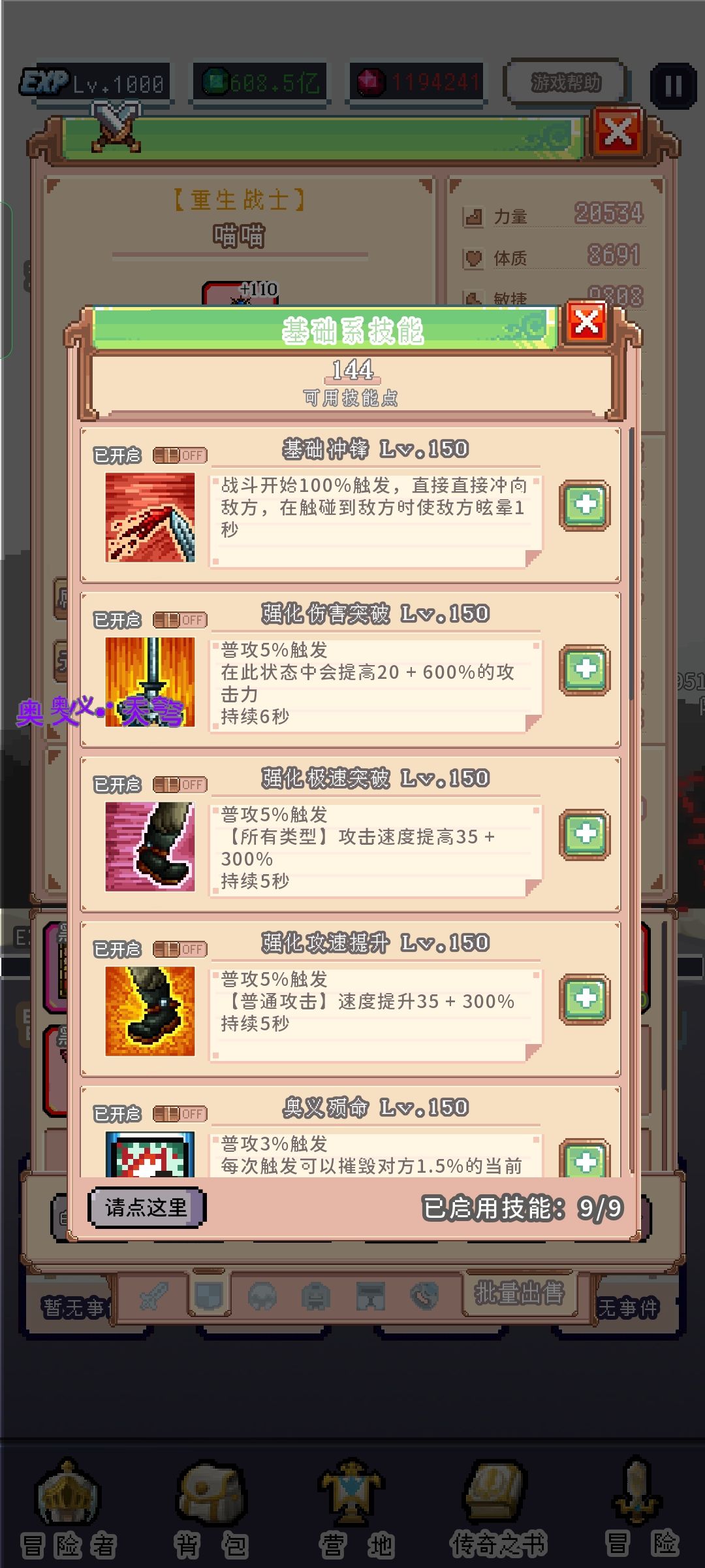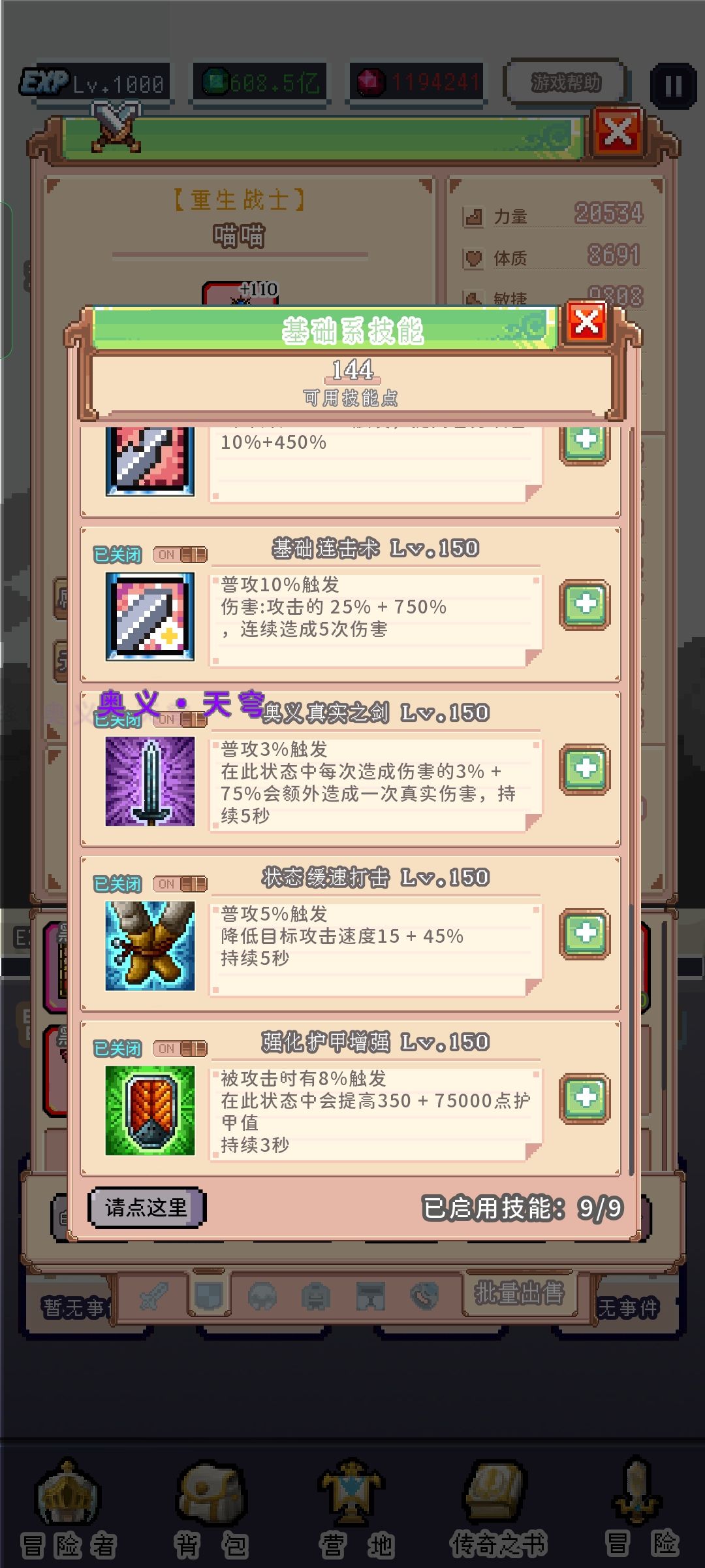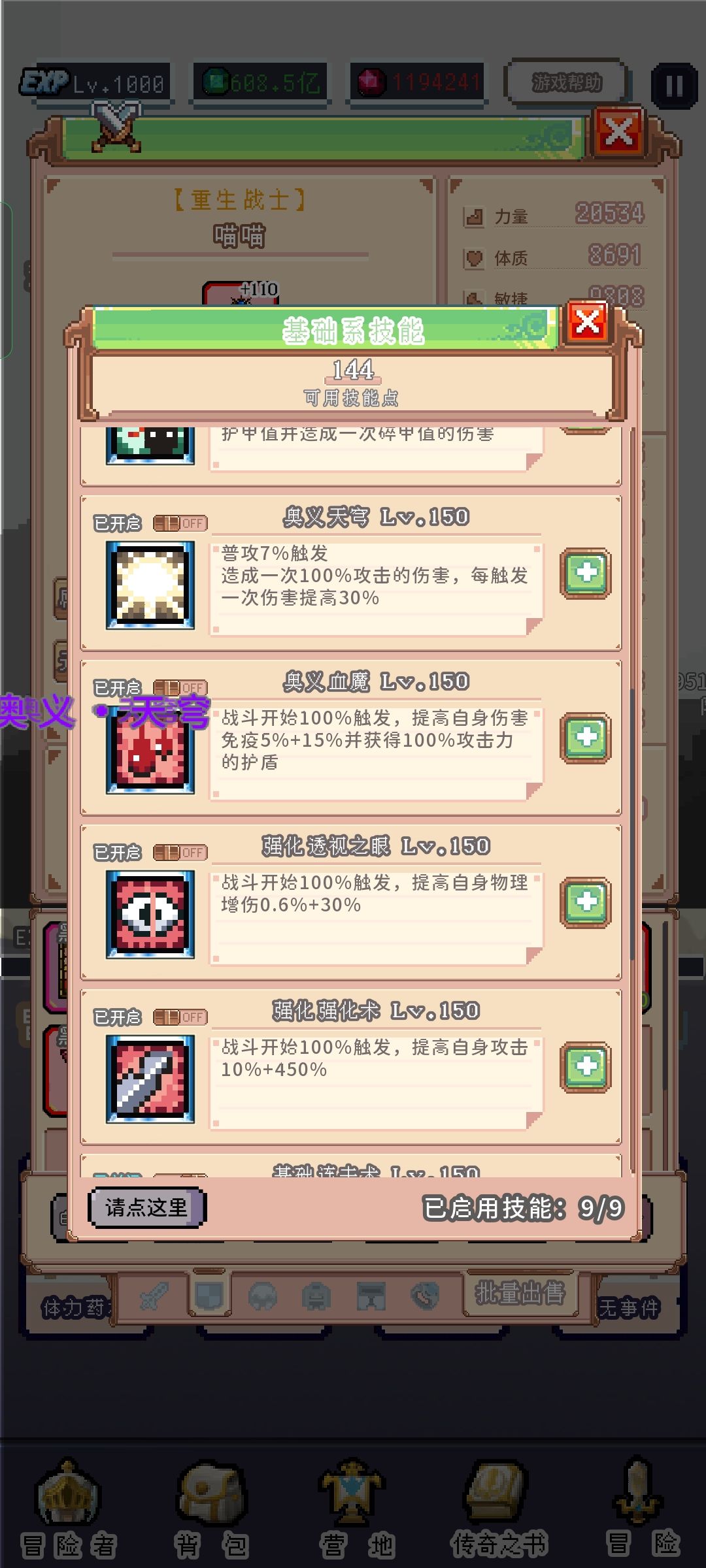 突破书在冒险者协会里买,你可以在生1000级的时候先买一些,这样子就不会等,到时候卡住。30次突破完。天赋个人认为这样子: