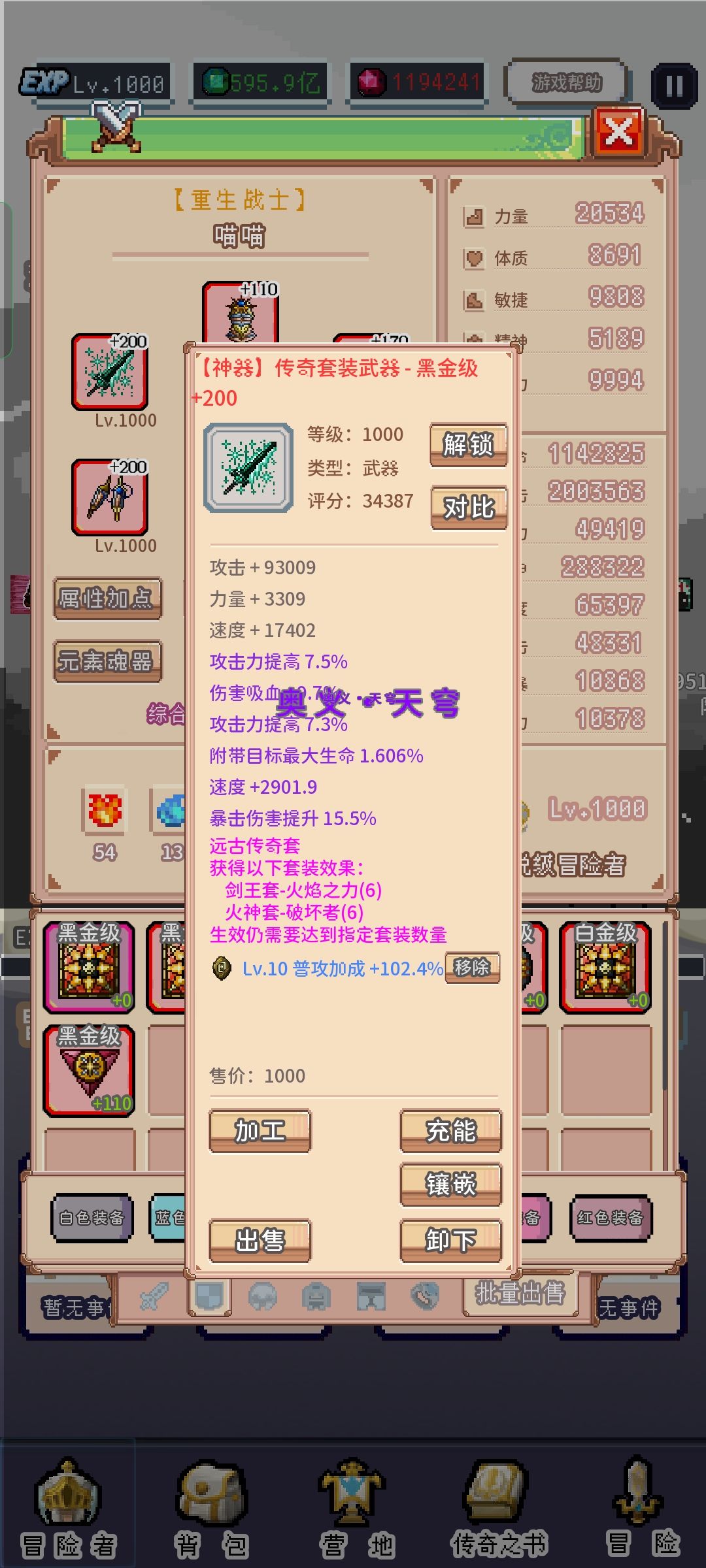 1000级一定要锻造!!!还有领装备!!重要的事强调一下。