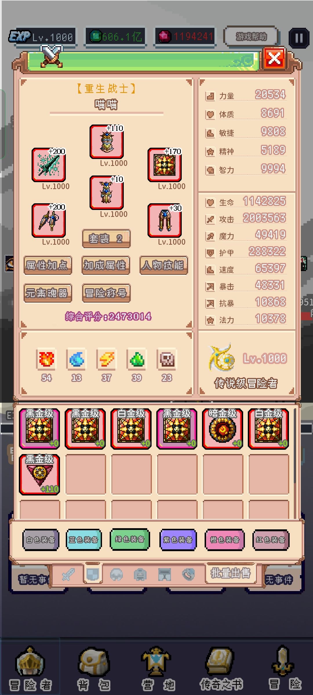 最后附属性图:因为没玩多久。资源太少了,所以装备也没升满,书也才90,但是打深渊和黑暗之地觉得很剑王强度很厉害了,我都打了850层还有余力,虽然可能还是比不上红帽,但是除了红帽以外不虚其他任何职业,推荐玩哦~不会坐牢的。