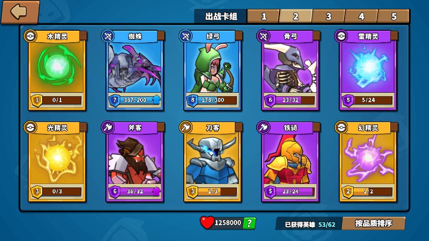 阵容:骨弓、绿弓、蜘蛛、铁骑、刀客、斧客、光精灵、木精灵、雷精灵、幻精灵。