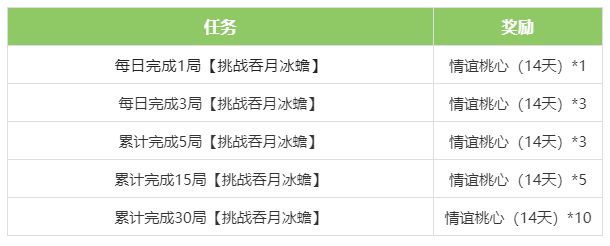 本次大家需要挑战的地图仍然是【挑战吞月冰蟾】,大家可以在【单人匹配】-【特殊关卡】中找到该地图,击败吞月冰蟾,完成指定任务后就可以获得情谊桃心。